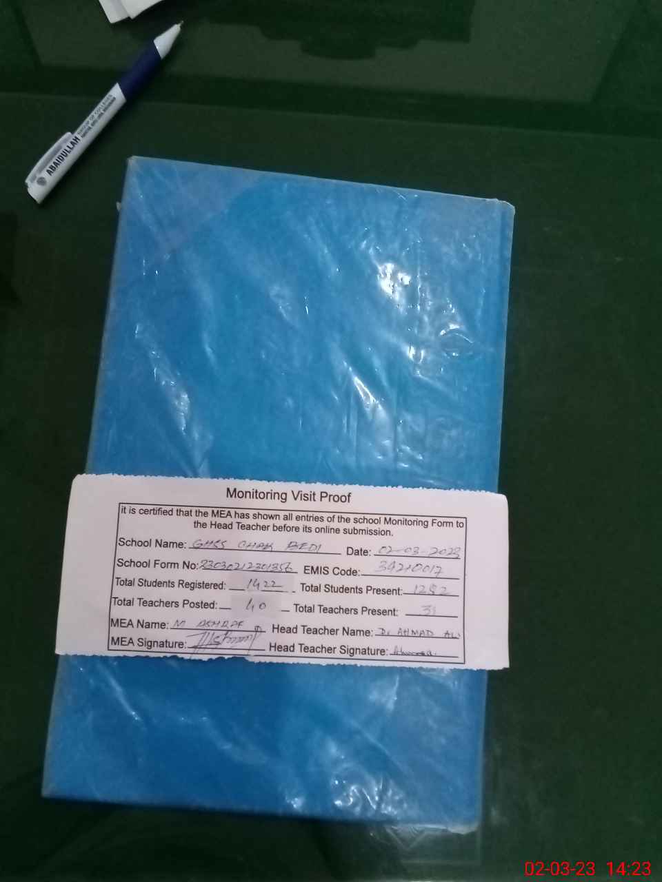 | Attendance Register | Head Teacher | MEA with School | Visit Proof |