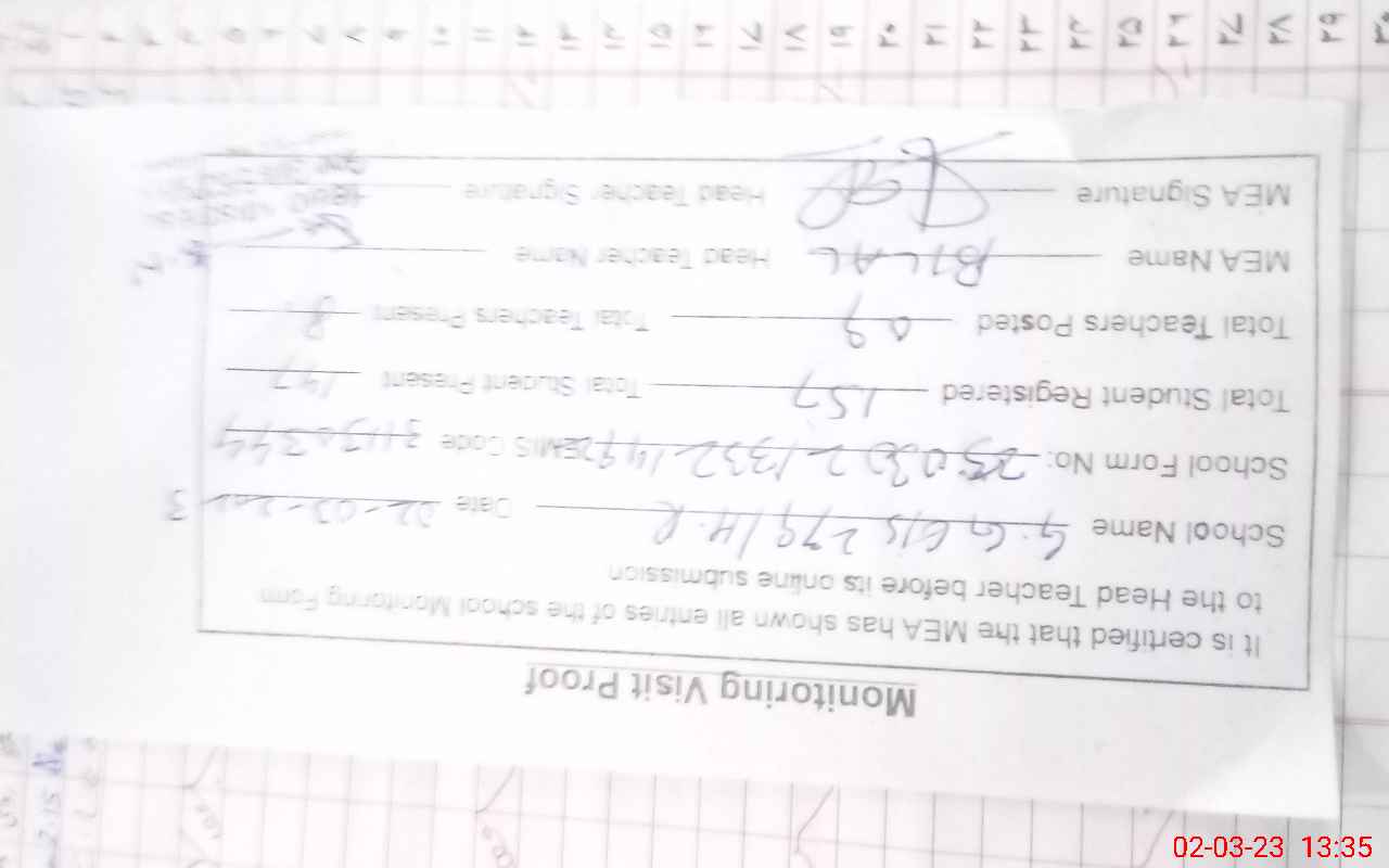 | Attendance Register | Head Teacher | MEA with School | Visit Proof |