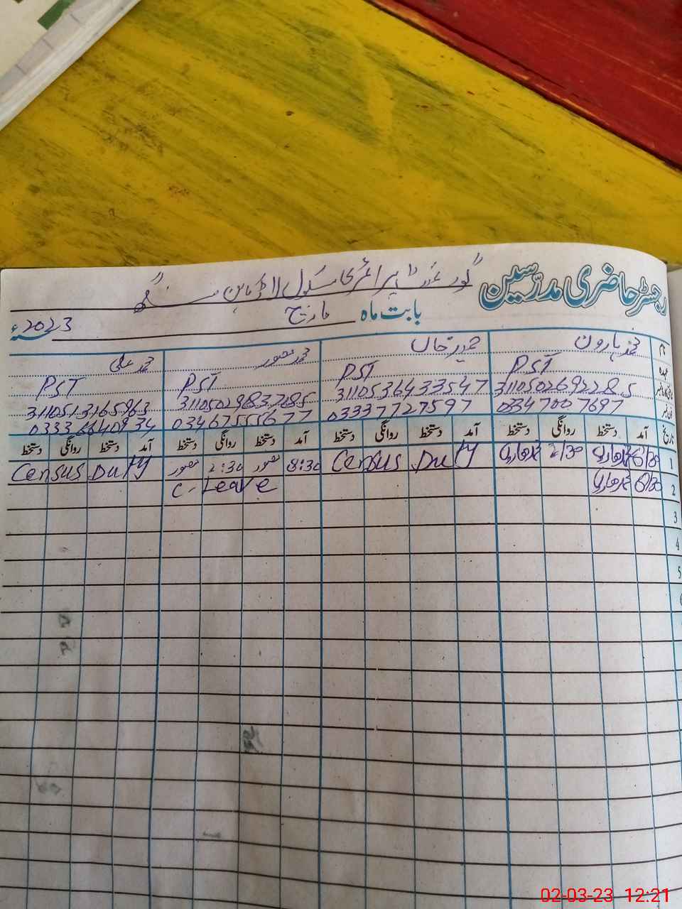 | Name: HA**** KH**** Designation: (School Headmaster's/Headmistress's) PST Phone/Cell Number: 03**** |