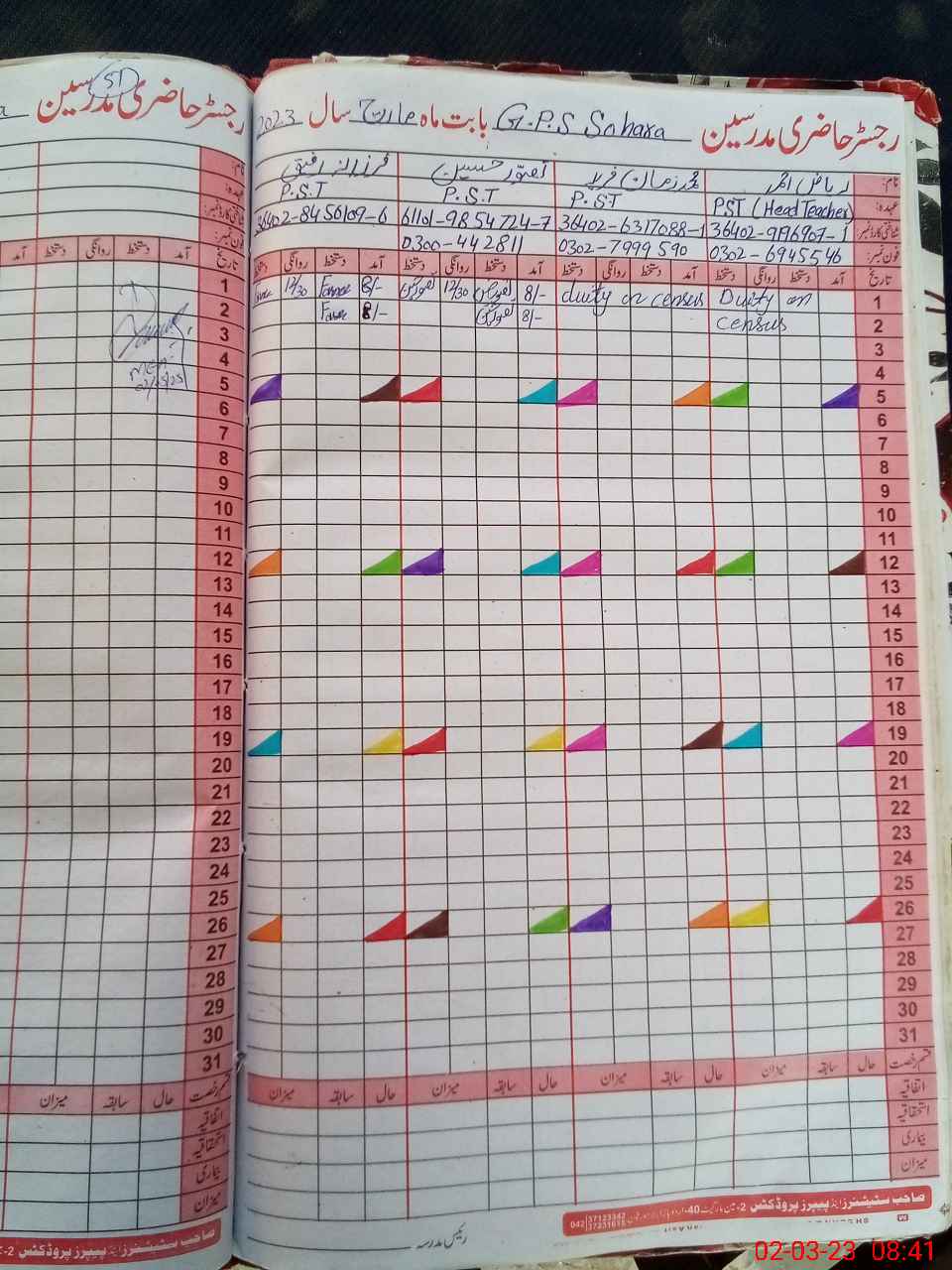 | Name: RI**** AH**** Designation: (School Headmaster's/Headmistress's) PST Phone/Cell Number: 03**** |