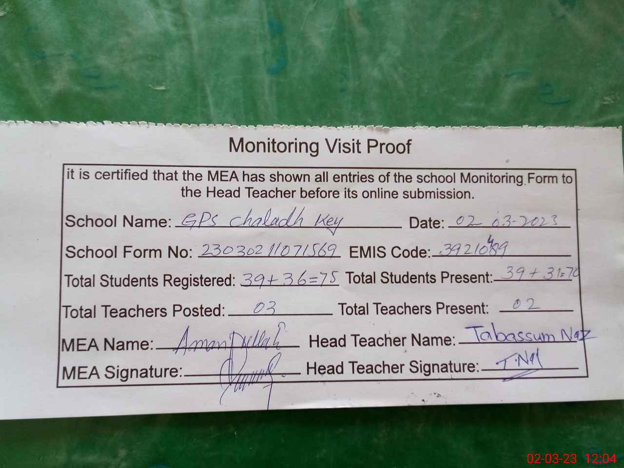 | EMIS Code: 39210489 | Name of School: GPS CHALADH KEY PO PAKPATTAN | |||