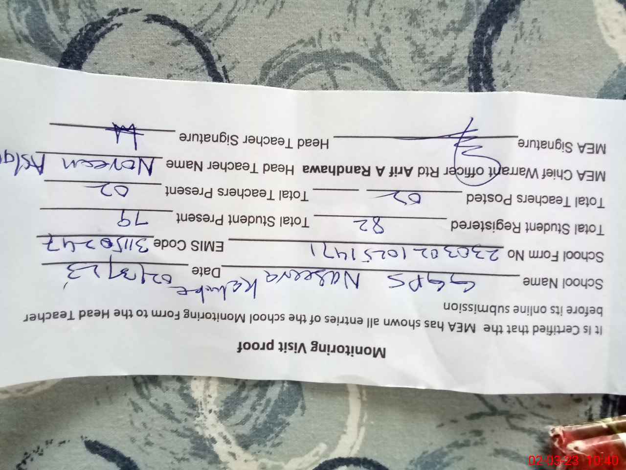 | Certified that this School was Inspected by the Undersigned MEA/DMO Today and the Information Stated Above is as Per Record. | |||||