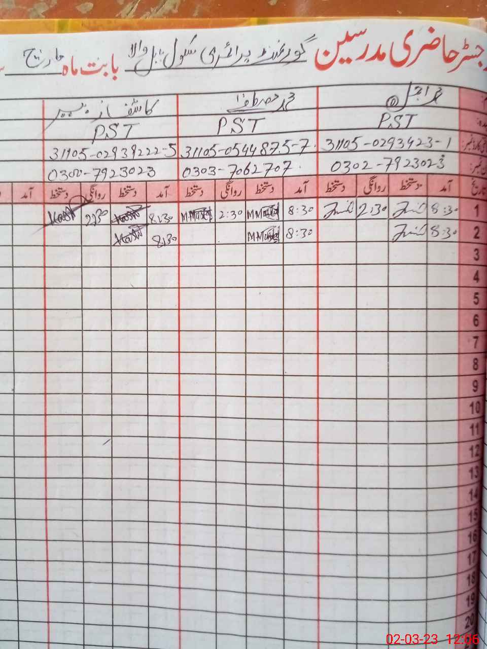 | Name: MMu**** Designation: (School Headmaster's/Headmistress's) PST Phone/Cell Number: 03**** |