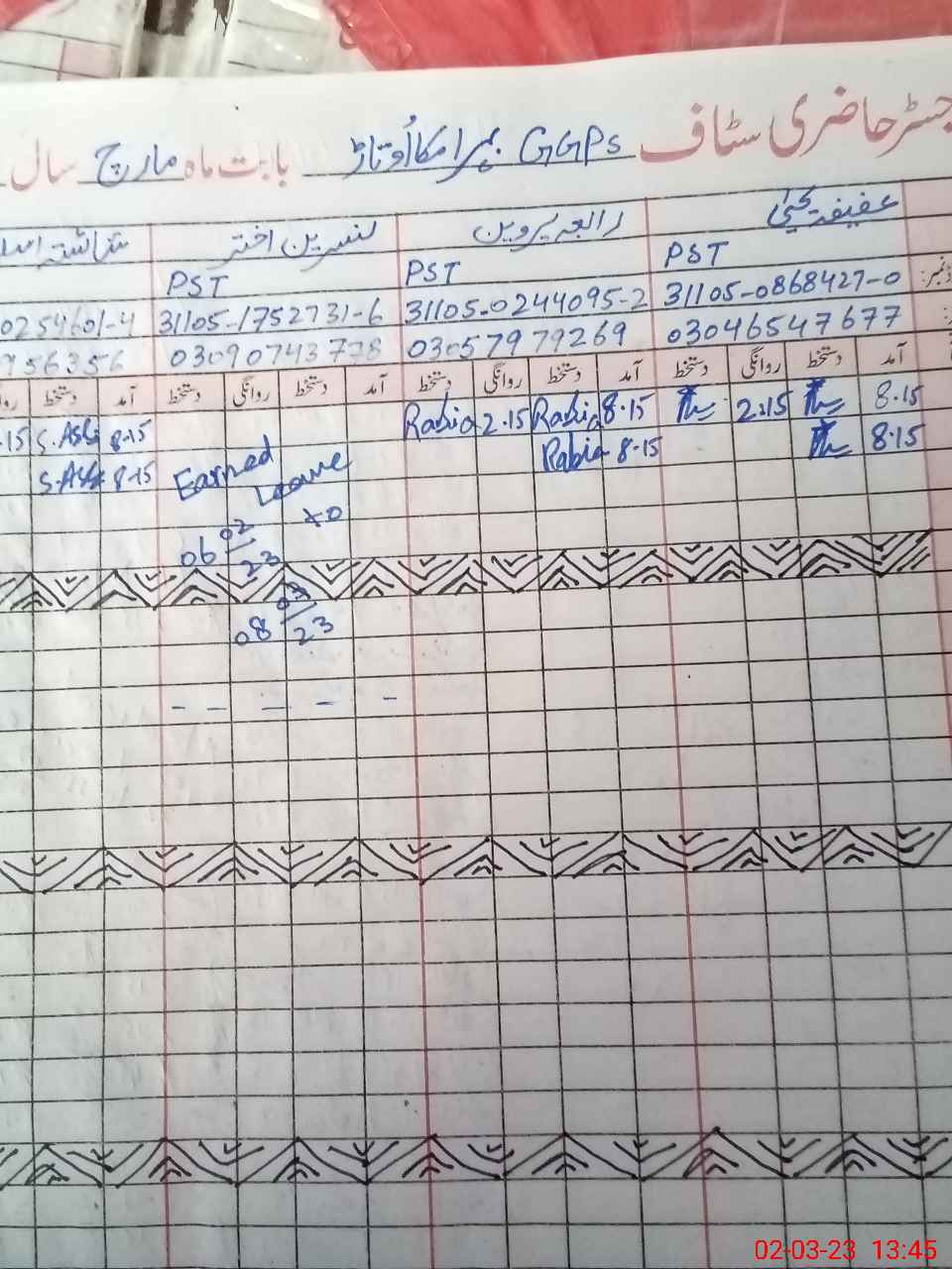 | CNIC | Full Name | Designation | R/C | Absence during last cal. month |