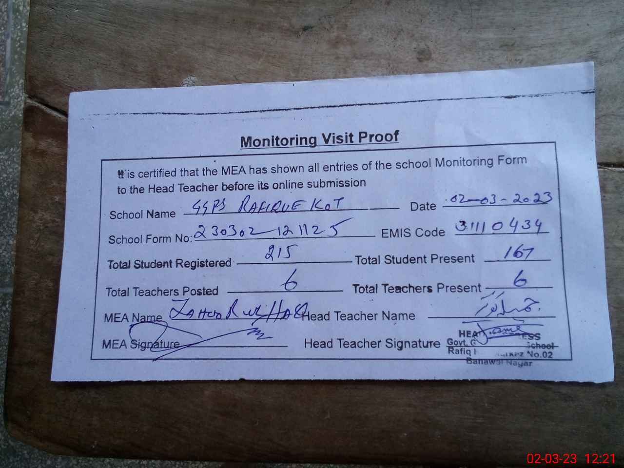 | EMIS Code: 31110434 | Name of School: GGPS RAFIQ KOT | |||