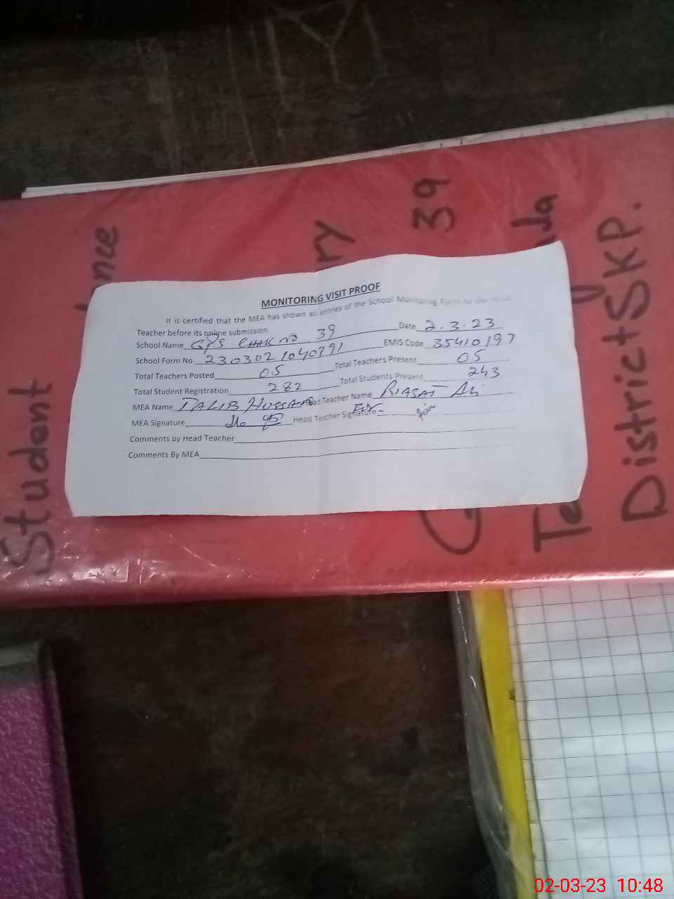 | EMIS Code: 35410197 | Name of School: GPS CHAK NO. 39 | |||