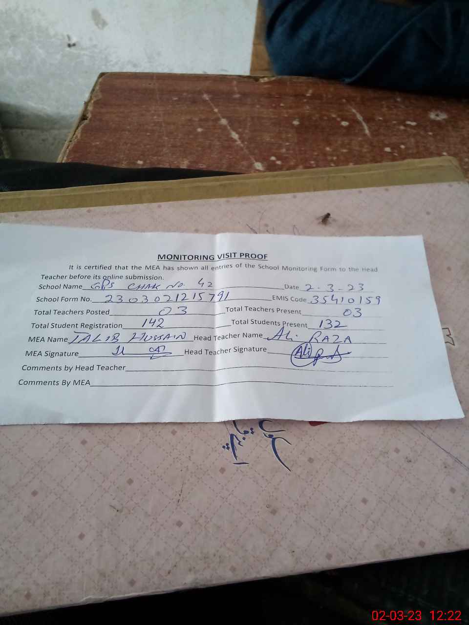 | EMIS Code: 35410159 | Name of School: GES CHAK NO 42 | |||