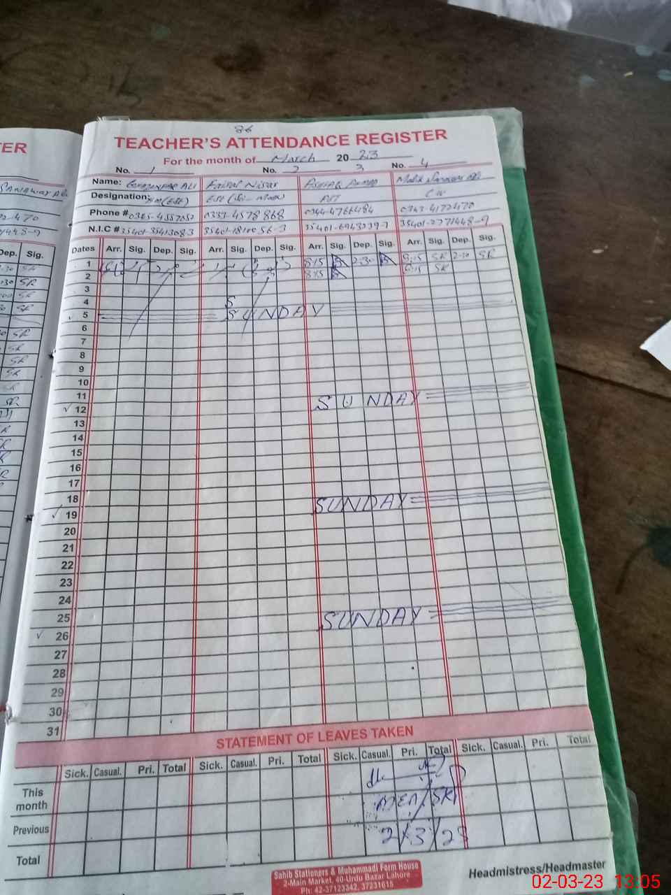 | Name: Gh**** Al**** Kh**** Designation: (School Headmaster's/Headmistress's) PST Phone/Cell Number: 03**** |