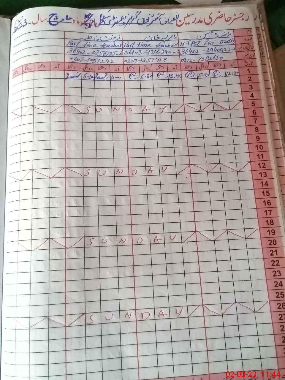 | Name: RA**** JA**** Designation: (School Headmaster's/Headmistress's) PST Phone/Cell Number: 03**** |