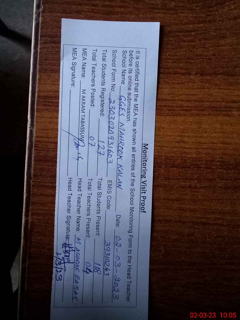 | EMIS Code: 39310243 | Name of School: GES MAHROOK KALAN | |||