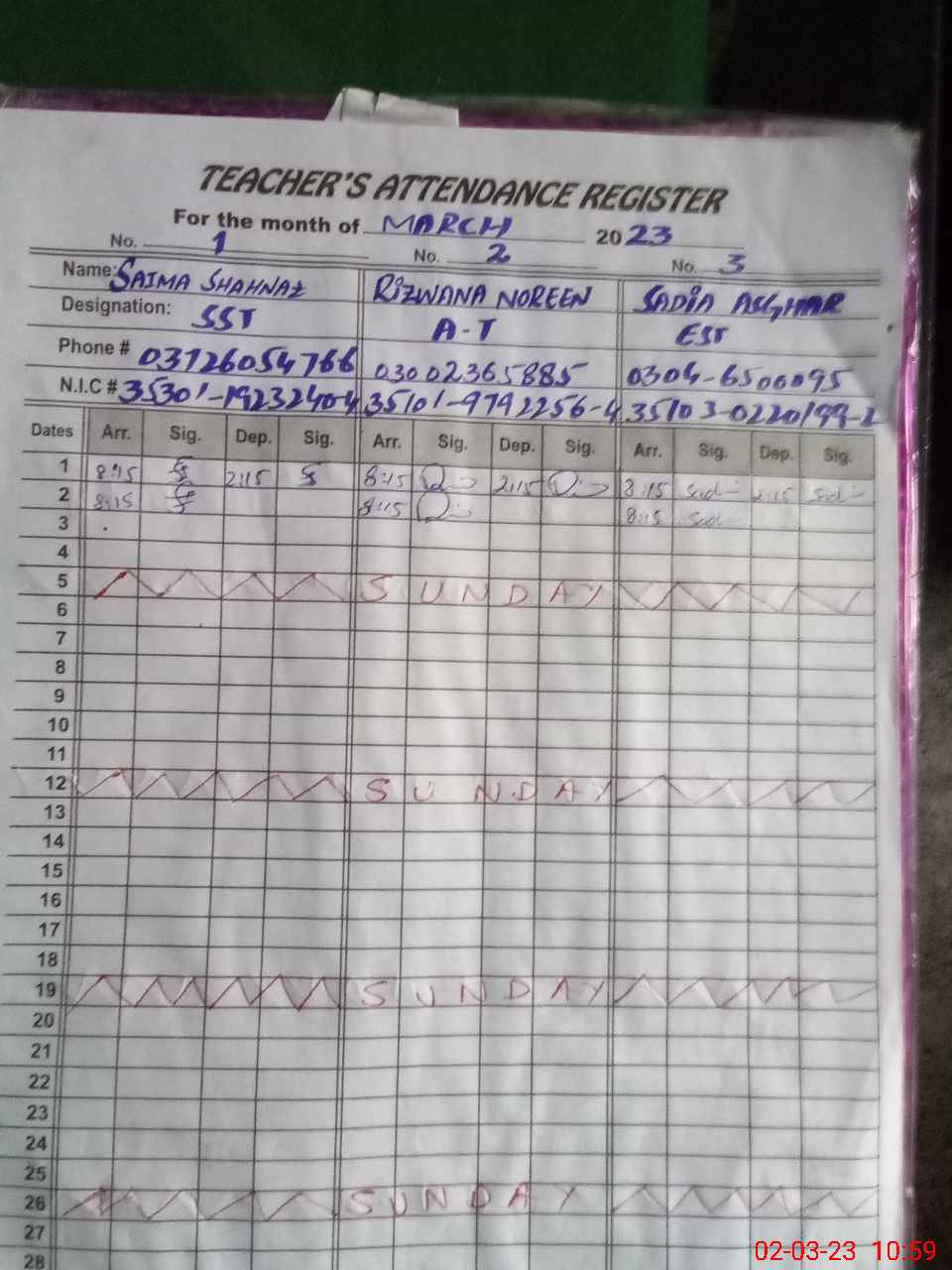 | Name: SA**** SH**** Designation: (School Headmaster's/Headmistress's) S.S.T.(Science) Phone/Cell Number: 03**** |