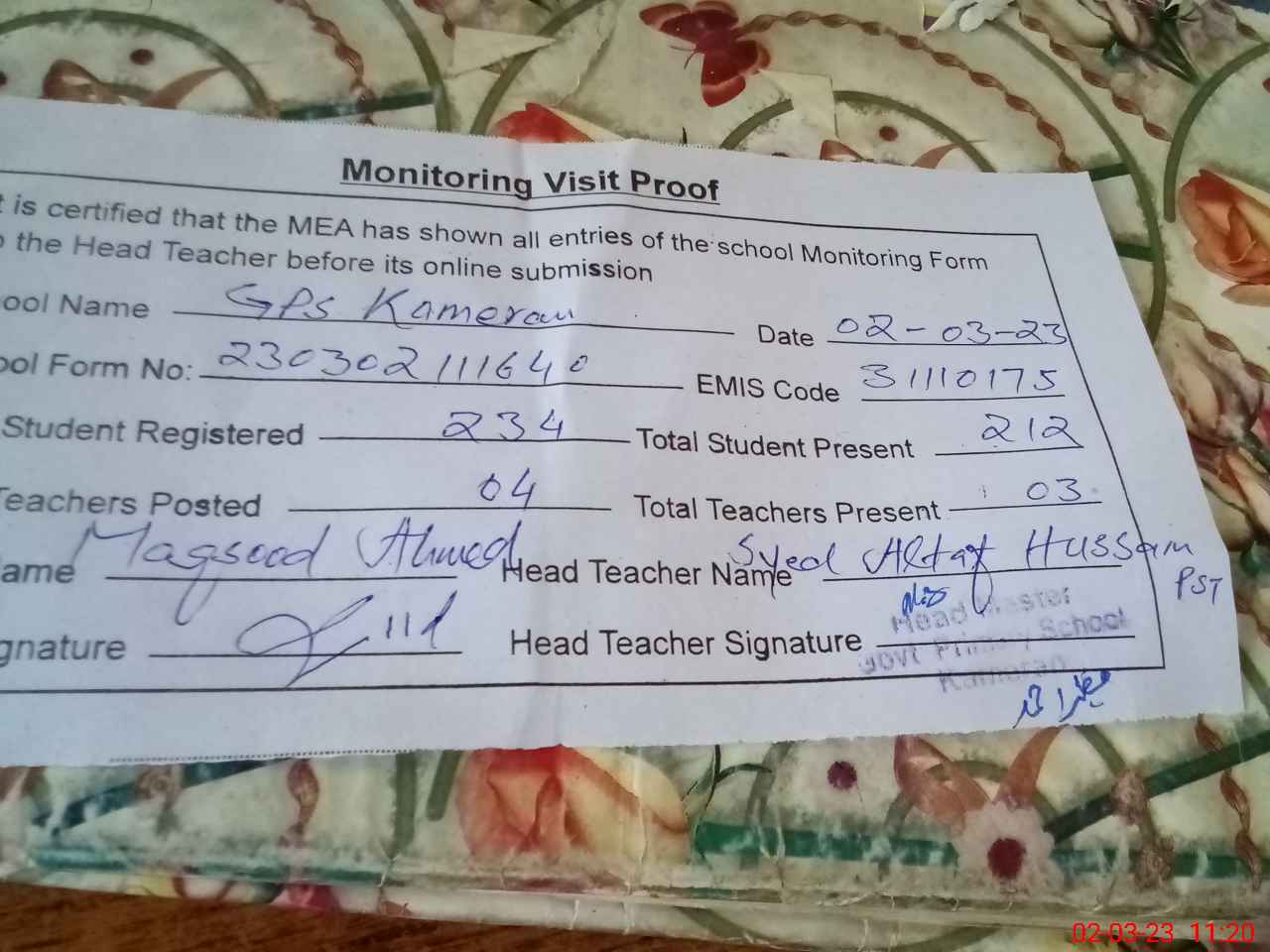 | EMIS Code: 31120175 | Name of School: GPS KAMERAN | |||