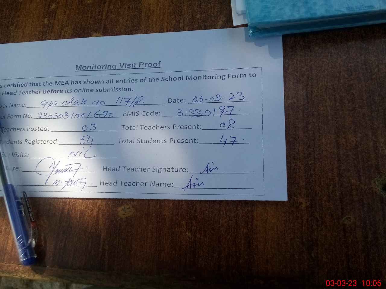 | EMIS Code: 31330197 | Name of School: GPS CHAK NO.117 P | |||