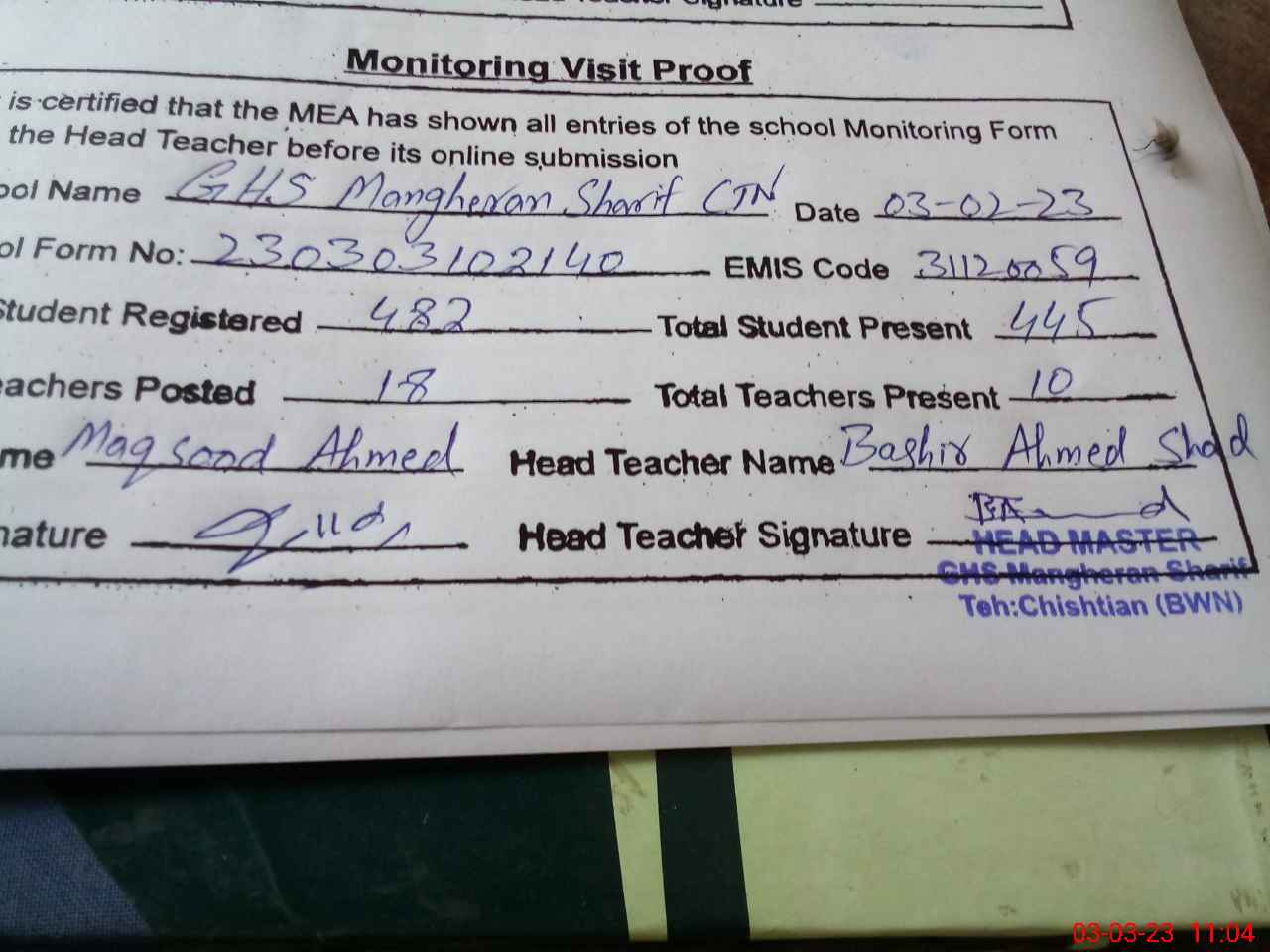 | EMIS Code: 31120059 | Name of School: GHS MANGHERAN SHARIF | |||