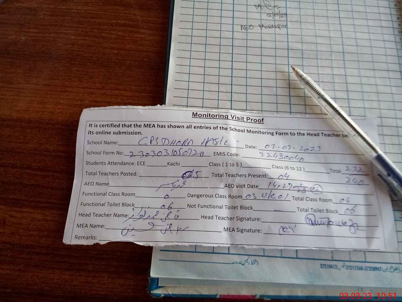 | EMIS Code: 32430040 | Name of School: GPS DHORA HASIL | |||