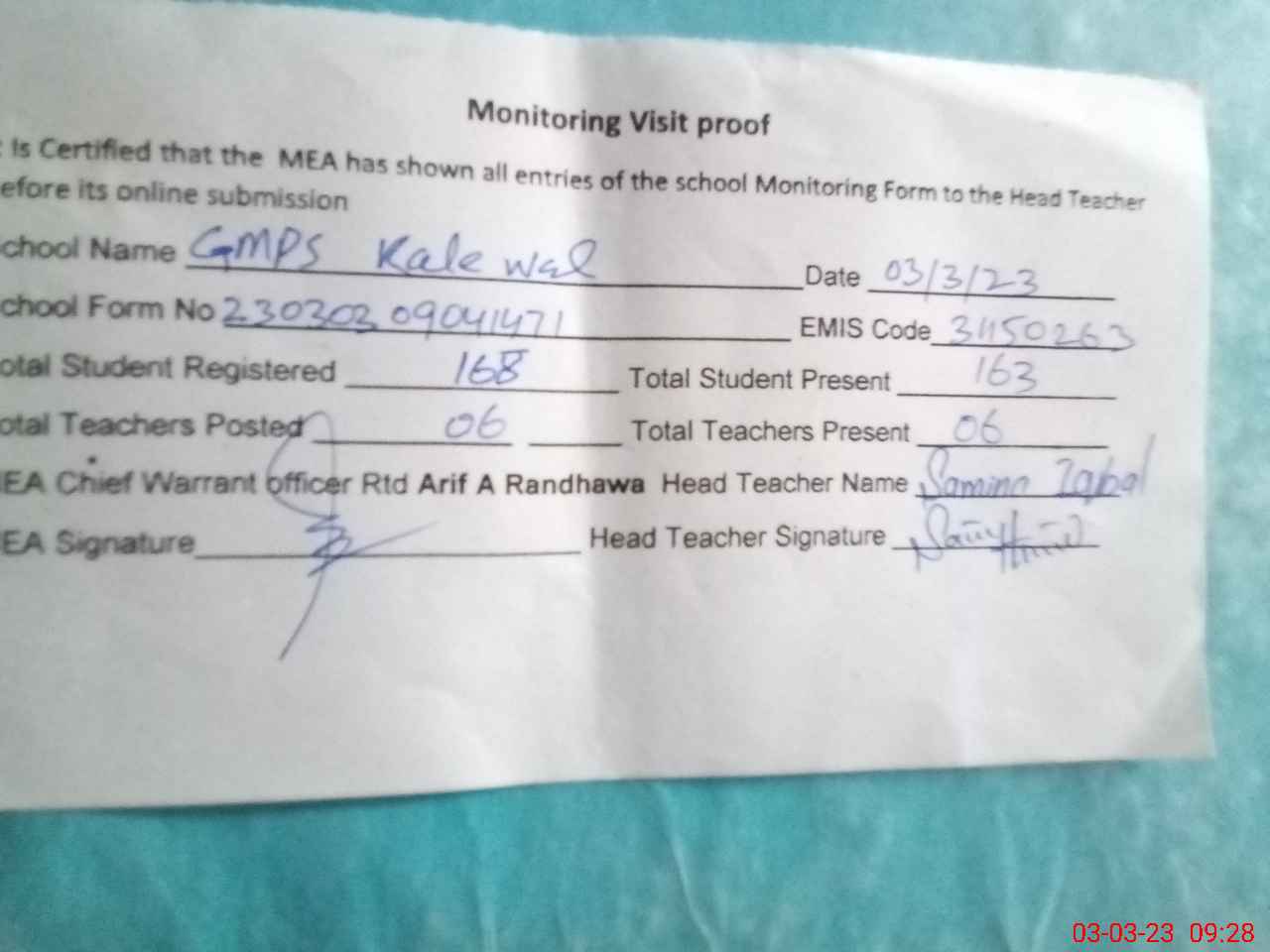 | EMIS Code: 31150263 | Name of School: GMPS KALE WAL | |||