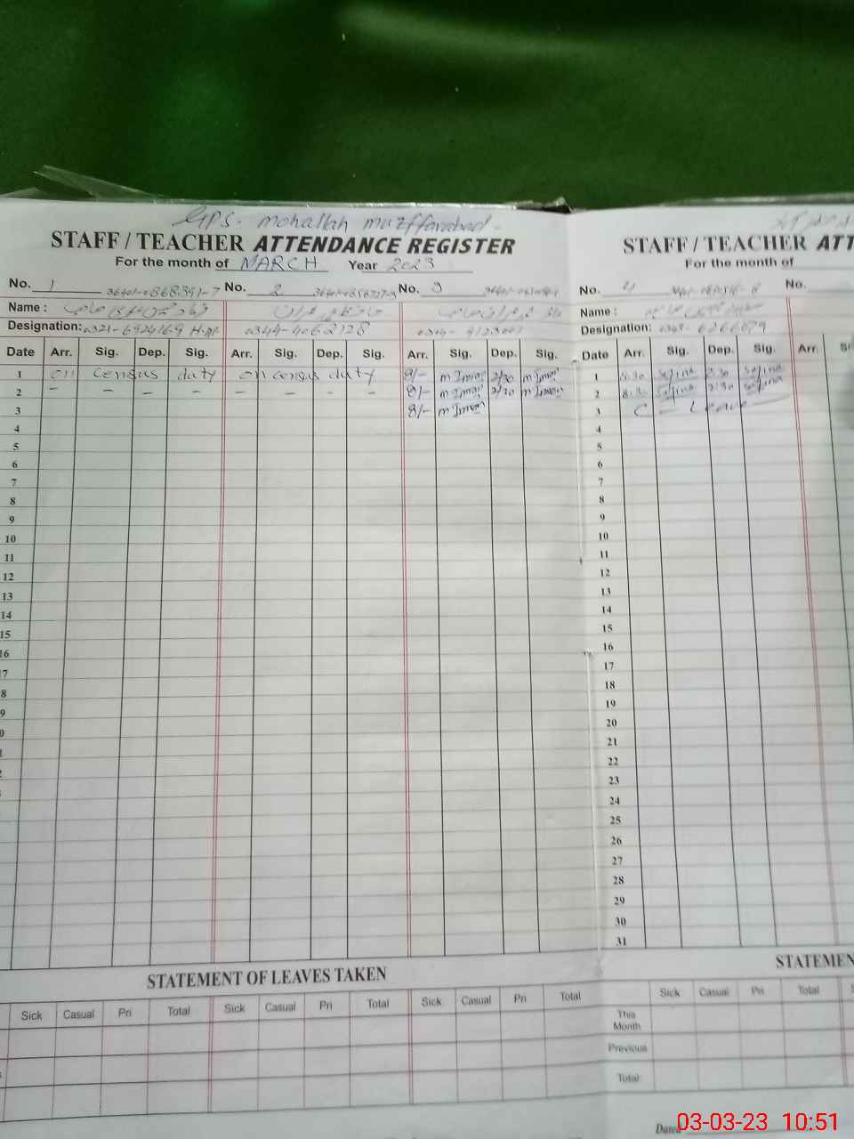 | Name: HA**** MU**** IM**** Designation: (School Headmaster's/Headmistress's) PST Phone/Cell Number: 03**** |