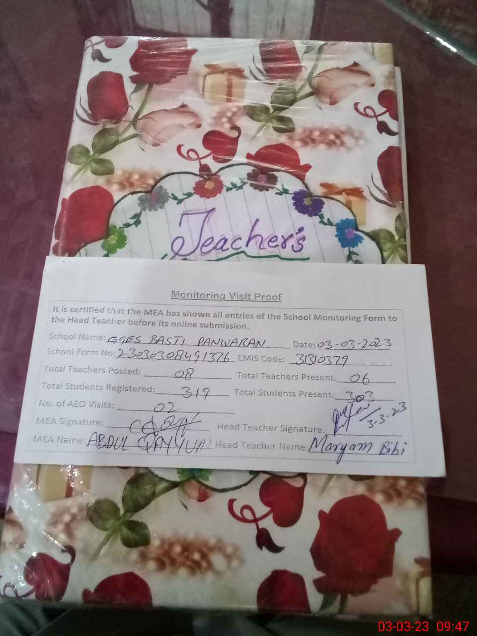 | EMIS Code: 31310379 | Name of School: GGHS BASTI PANWARAN | |||