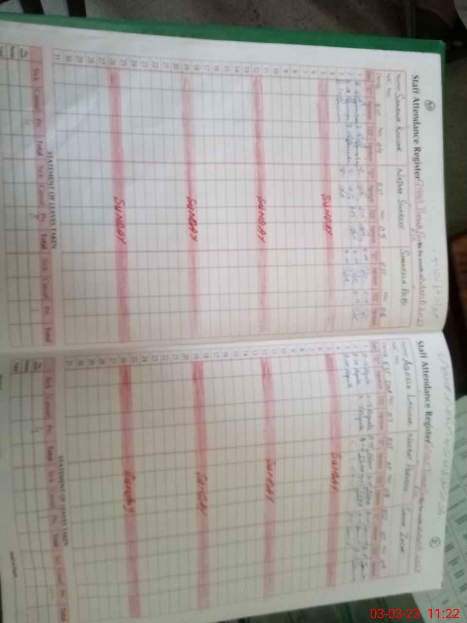 | CNIC | Full Name | Designation | R/C | Absence During Last Calender Month |
