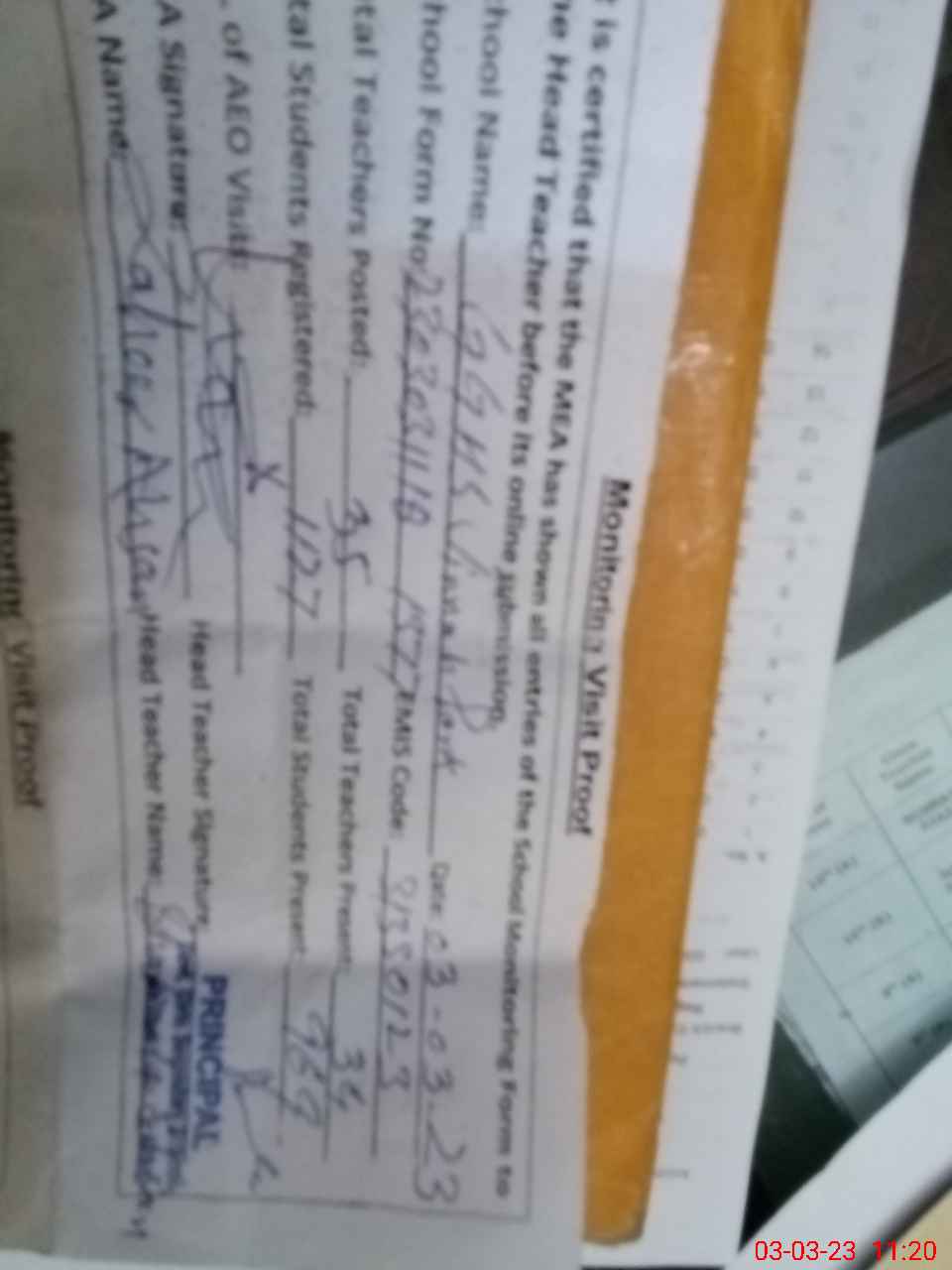| Attendance Register | Head Teacher | MEA with School | Visit Proof |