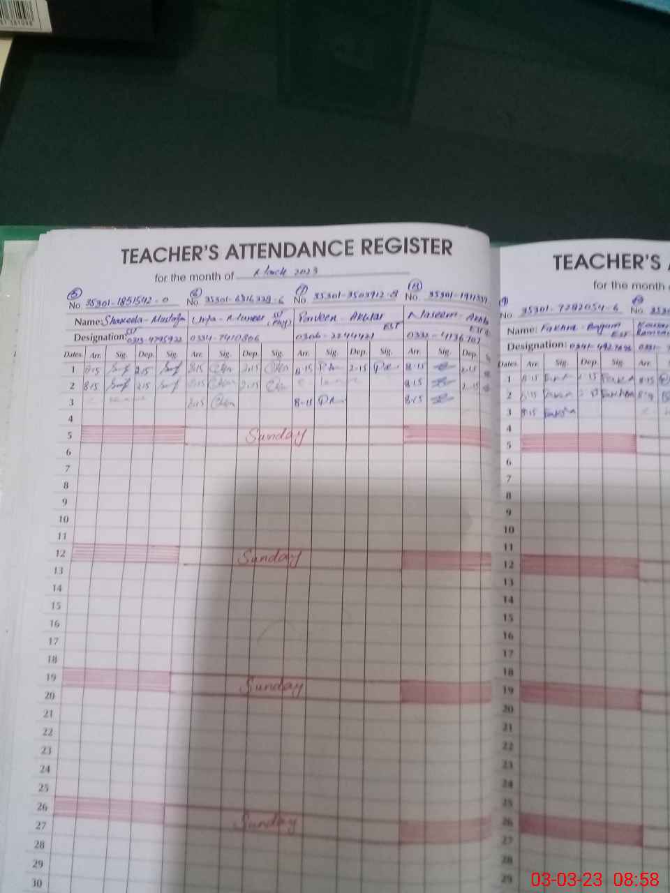 | Name: Un**** Pa**** Designation: (School Headmaster's/Headmistress's) HM Phone/Cell Number: 03**** |