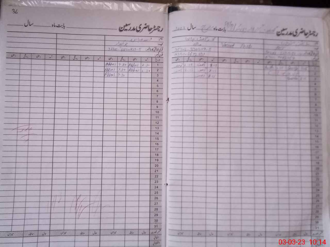| CNIC | Full Name | Designation | R/C | Absence During Last Calender Month |