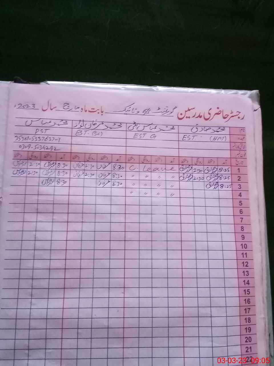 | Name: HA**** NA**** Designation: (School Headmaster's/Headmistress's) SST Headmaster Phone/Cell Number: 03**** |