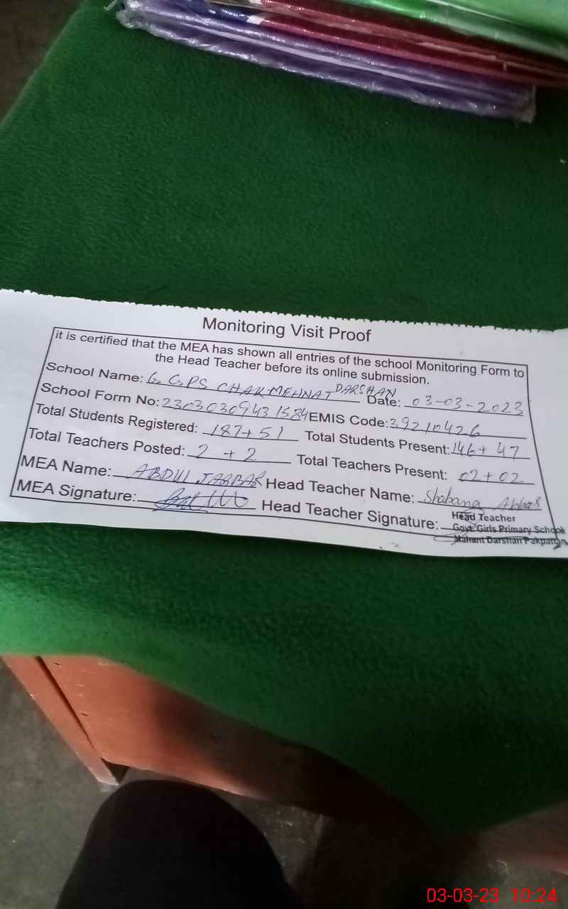 | EMIS Code: 39210426 | Name of School: GGPS CHAK MEHNAT DURSHAN | |||