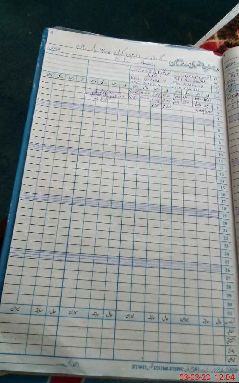 | Name: MU**** LA**** Designation: (School Headmaster's/Headmistress's) S.S.T.(GENERAL) Phone/Cell Number: 03**** |