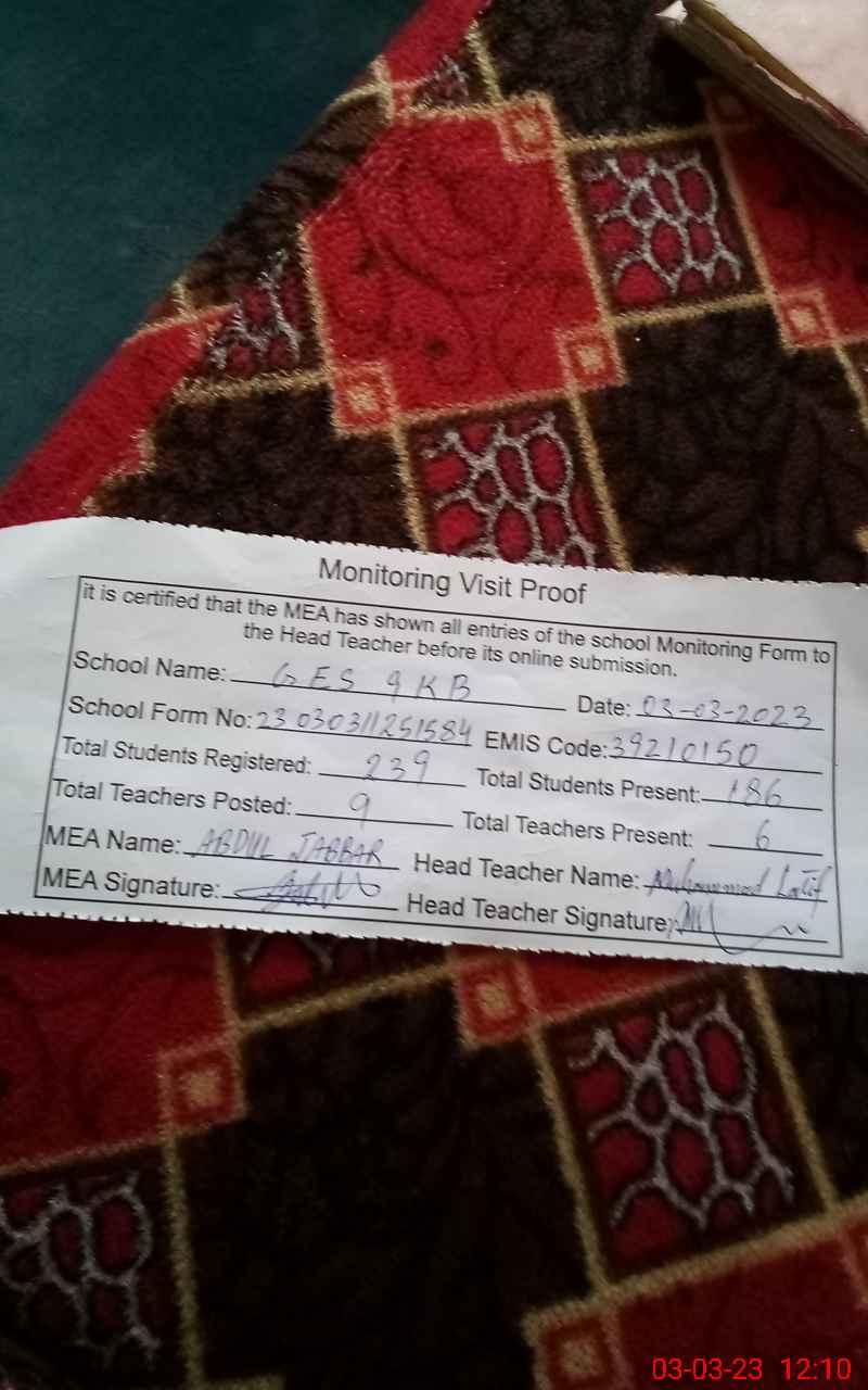 | Certified that this School was Inspected by the Undersigned MEA/DMO Today and the Information Stated Above is as Per Record. | |||||