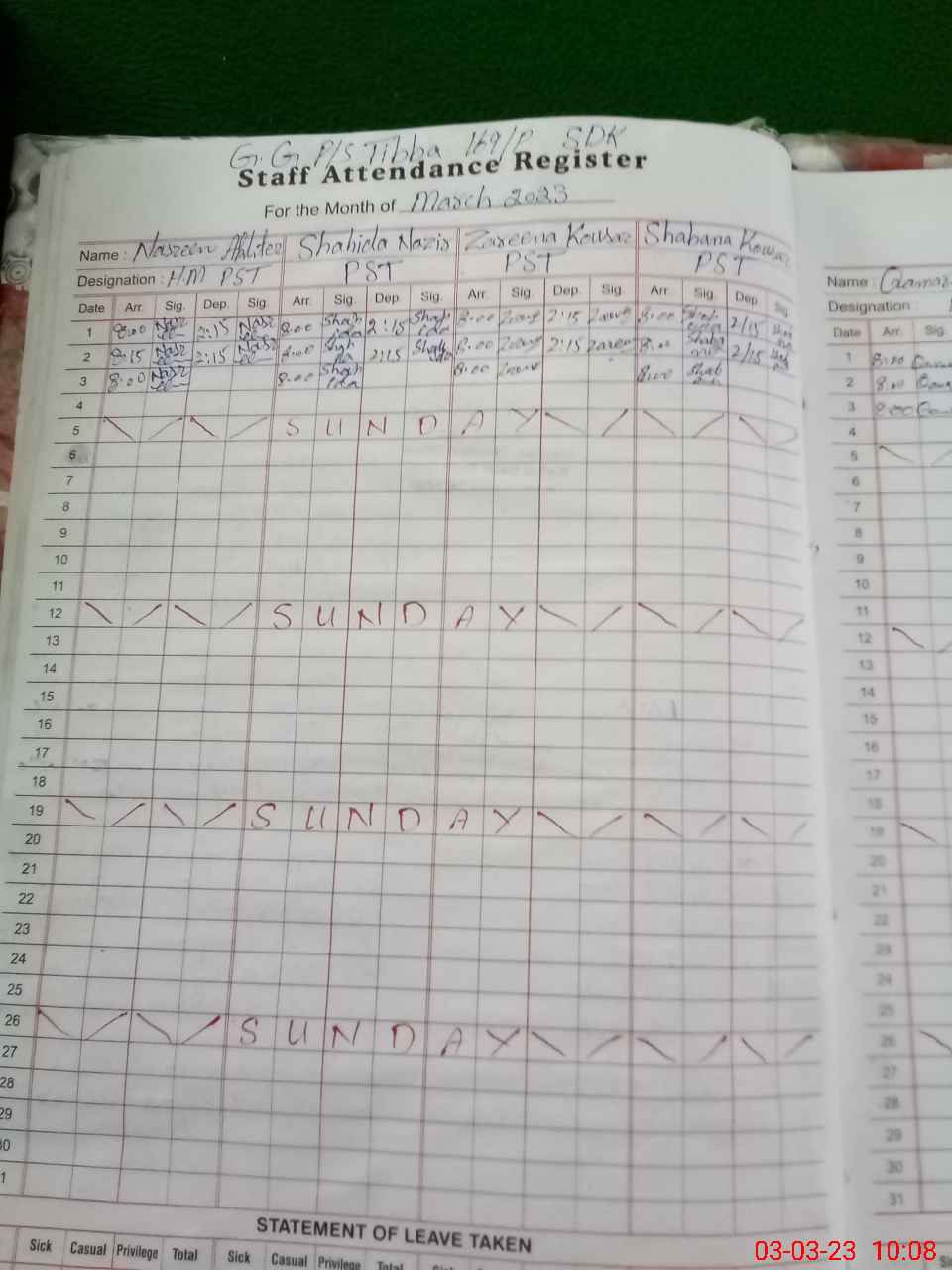 | Remarks (Use Separate Page if Required): PST qamar in Nisa posted to this school Wed 15 February 2023 but not yet actioned on sis | |||||