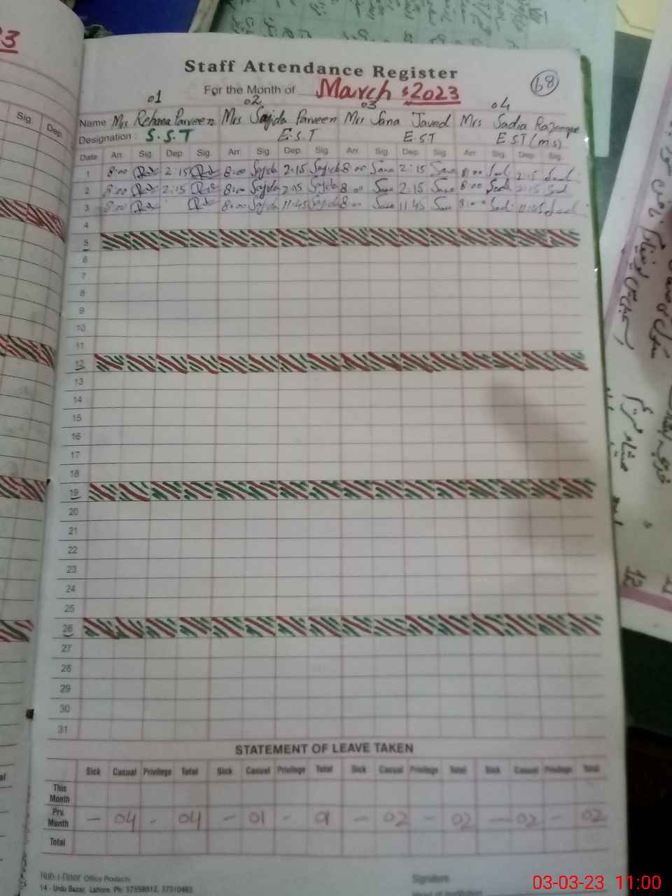 | CNIC | Full Name | Designation | R/C | Absence During Last Calender Month |