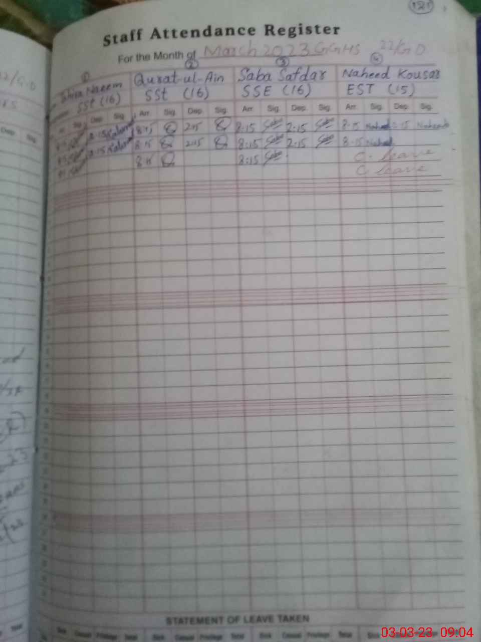 | Leave | Duty | Absent | Maternity | Medical | Ex- Pak |
