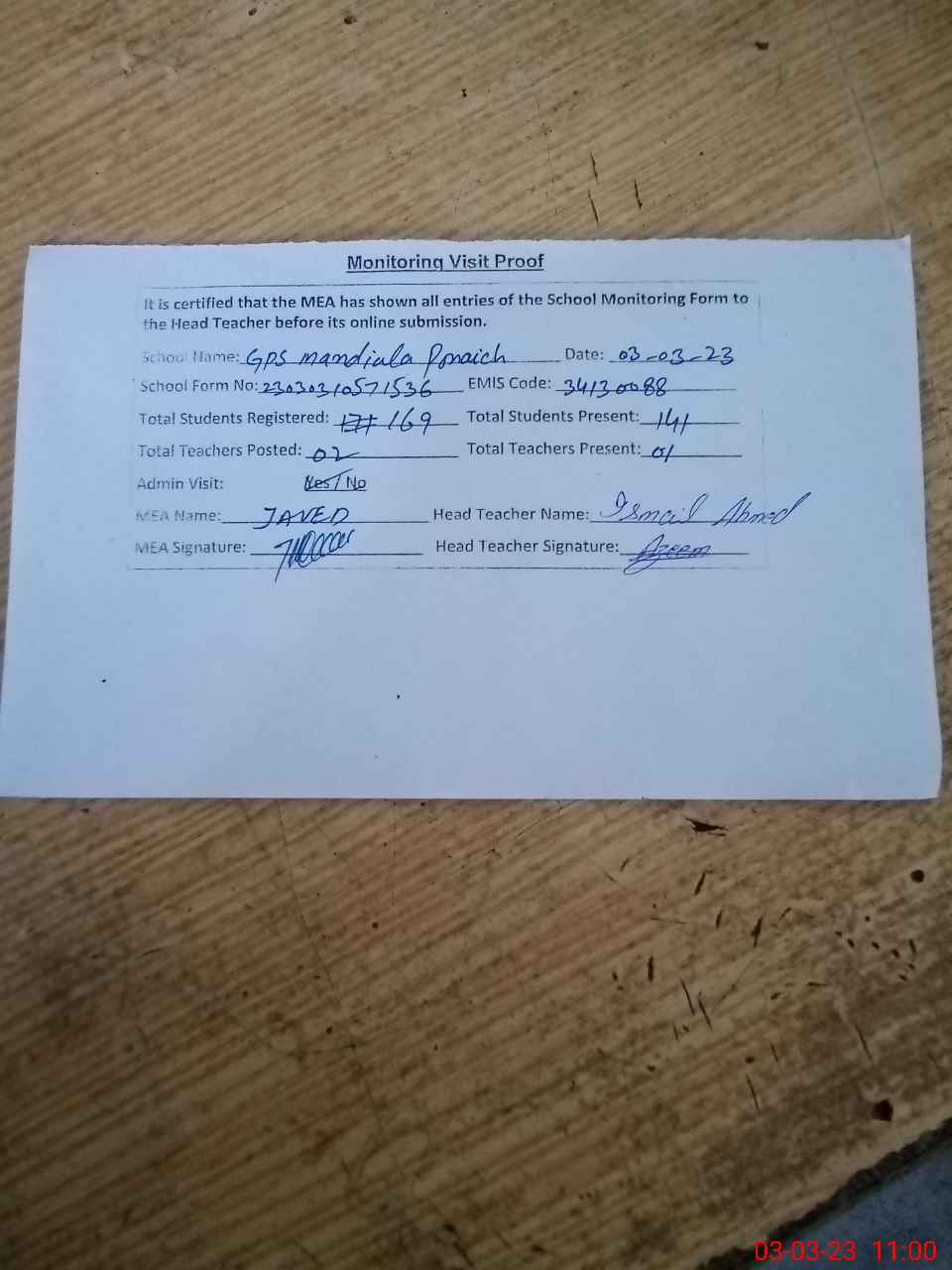 | EMIS Code: 34130088 | Name of School: GPS MANDIALA PONECH | |||