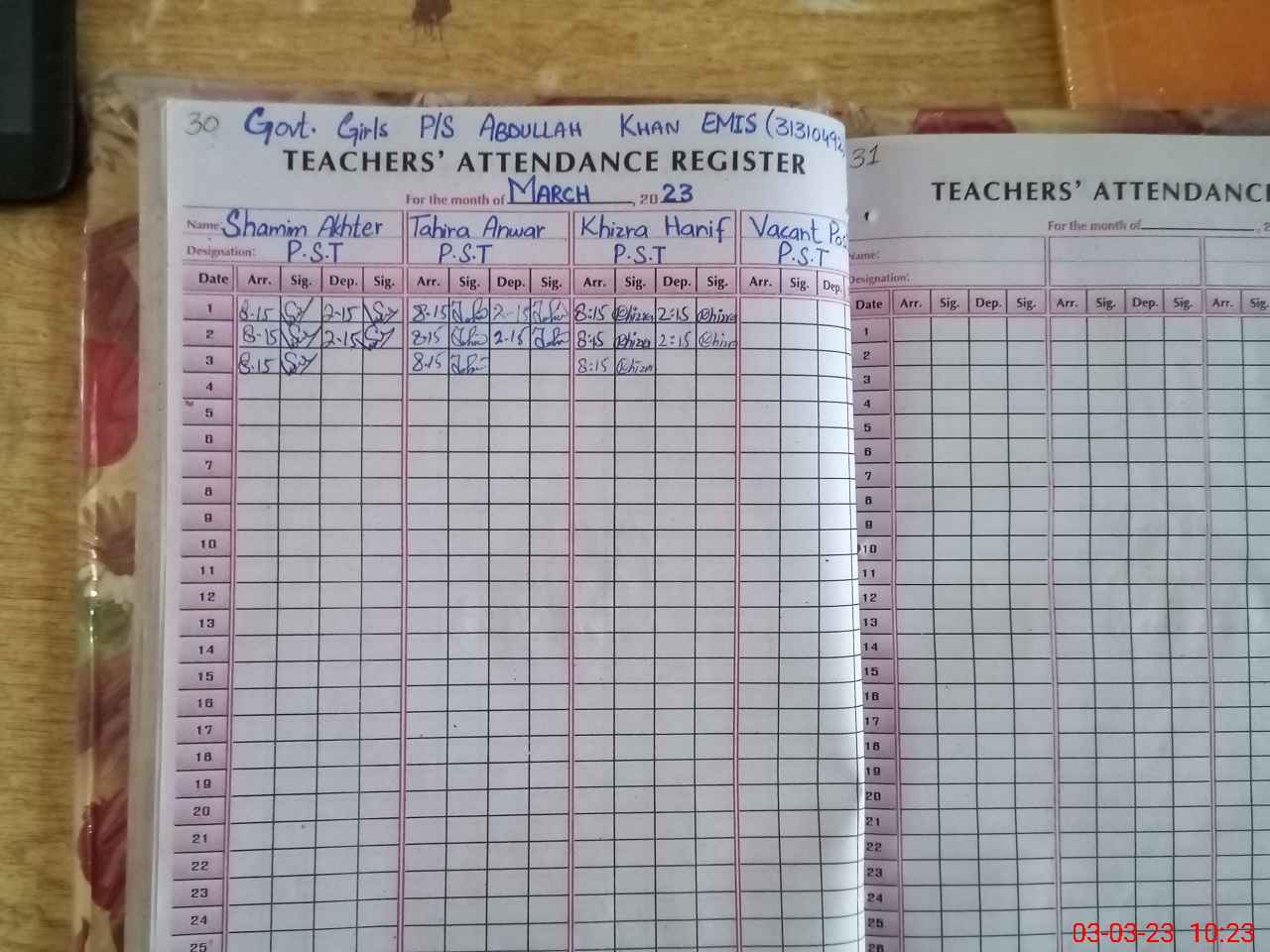 | Name: SH**** AK**** Designation: (School Headmaster's/Headmistress's) PST Phone/Cell Number: 03**** |