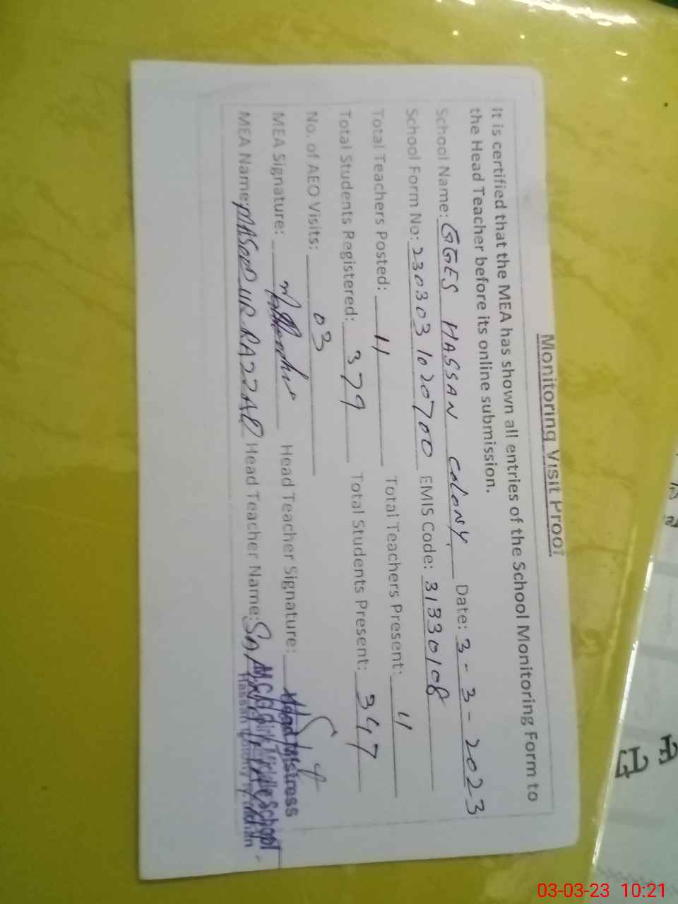 | EMIS Code: 31330108 | Name of School: GGES HASSAN COLONY | |||