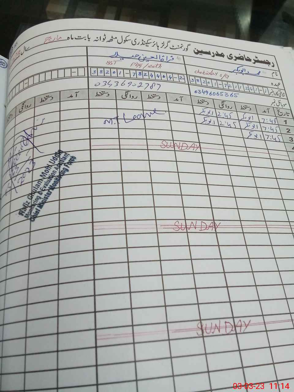 | Name: Fa**** Ya**** Al**** Designation: (School Headmaster's/Headmistress's) Principle Phone/Cell Number: 03**** |