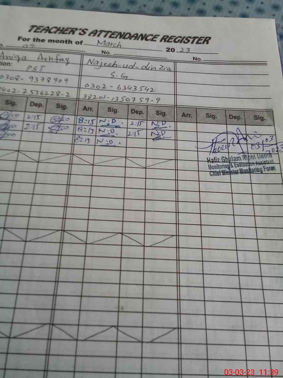 | Name: Nu**** Za**** Designation: (School Headmaster's/Headmistress's) PST Phone/Cell Number: 03**** |