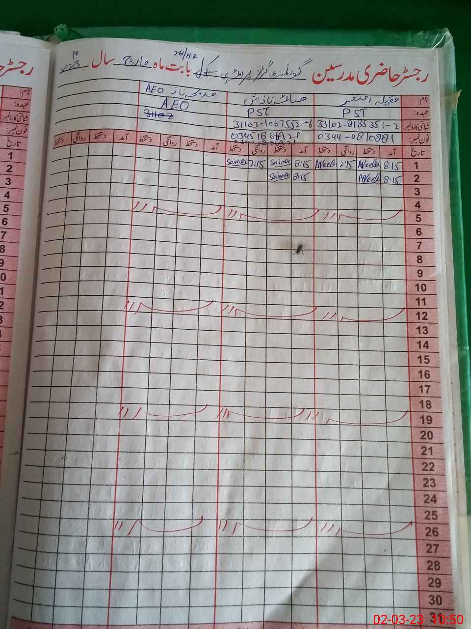 | Name: AQ**** AS**** Designation: (School Headmaster's/Headmistress's) PST Phone/Cell Number: 03**** |
