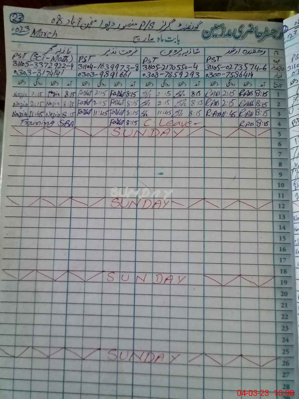 | 31**** | Na**** Sa**** | ESE | Contract | 0 | 0 | 0 | 0 | 0 | 0 | 0 | 0 | 0 | On Training |