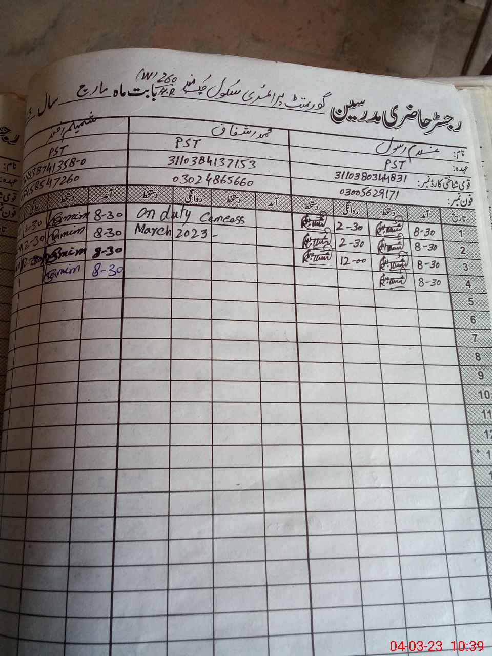 | Name: Sh**** Ak**** Designation: (School Headmaster's/Headmistress's) PST Phone/Cell Number: 03**** |