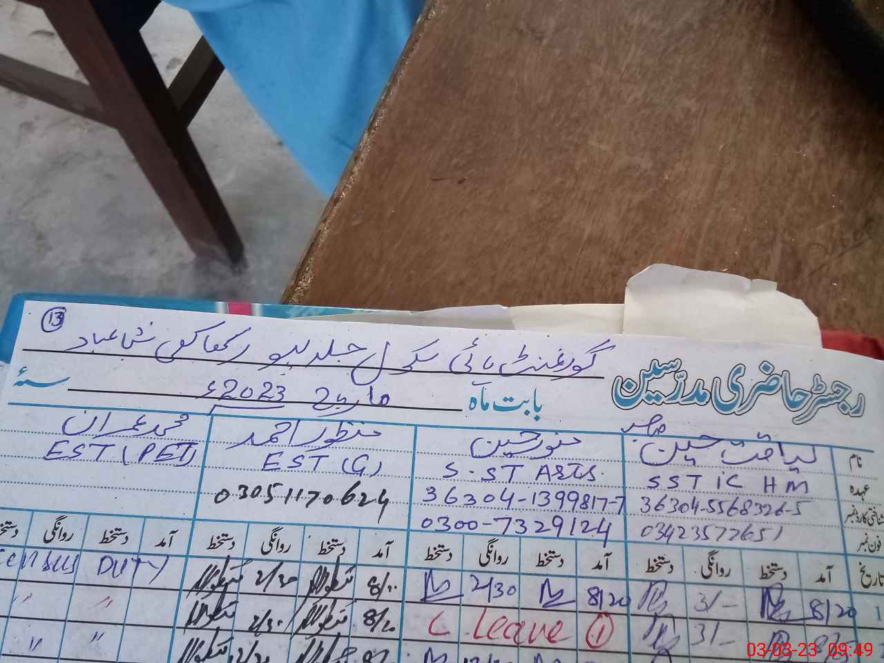 | Name: Ma**** Mu**** Is**** Designation: (School Headmaster's/Headmistress's) Head Master Phone/Cell Number: 03**** |