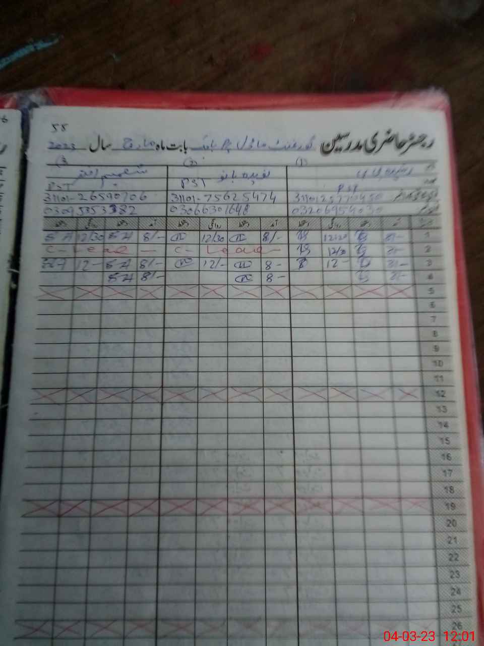 | CNIC | Full Name | Designation | R/C | Absence During Last Calender Month |