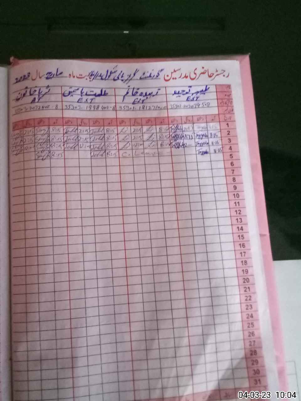 | Name: KH**** Ba**** Designation: (School Headmaster's/Headmistress's) HEAD MISTESS Phone/Cell Number: 03**** |