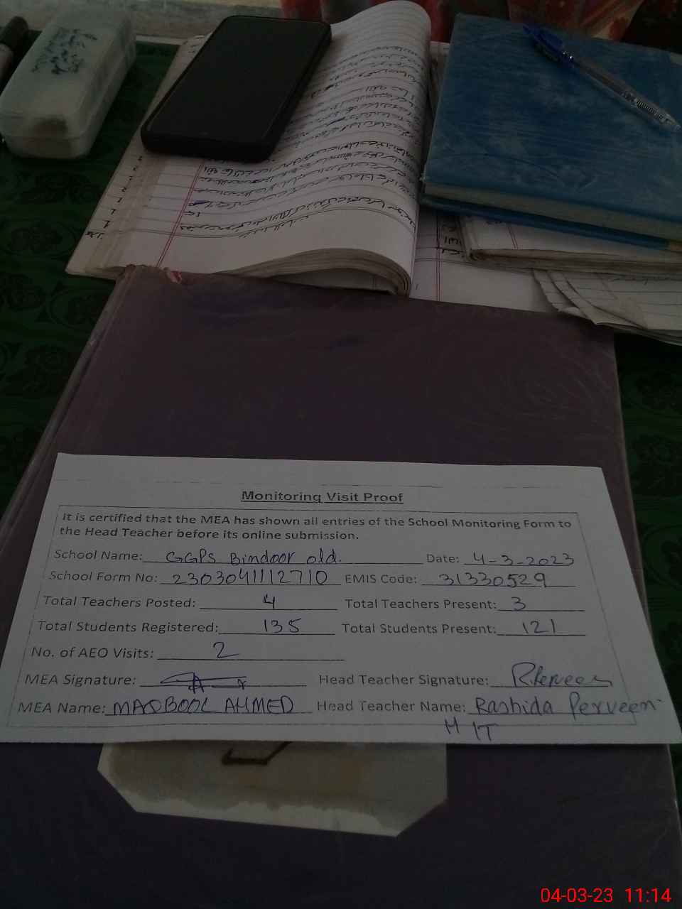 | EMIS Code: 31330529 | Name of School: GGPS BANDOOR OLD | |||