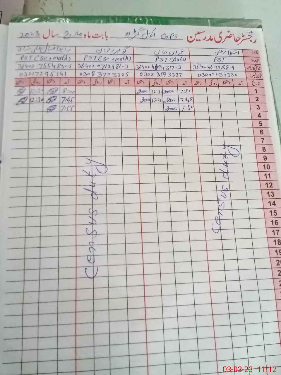 | Name: Im**** Kh**** Designation: (School Headmaster's/Headmistress's) PST Phone/Cell Number: 03**** |
