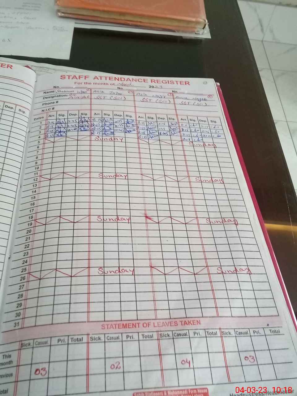 | 31**** | Za**** UnNi**** | PST | Regular | 0 | 0 | 28 | 0 | 0 | 0 | 0 | 0 | 0 | Absent (Un-Authorized) |