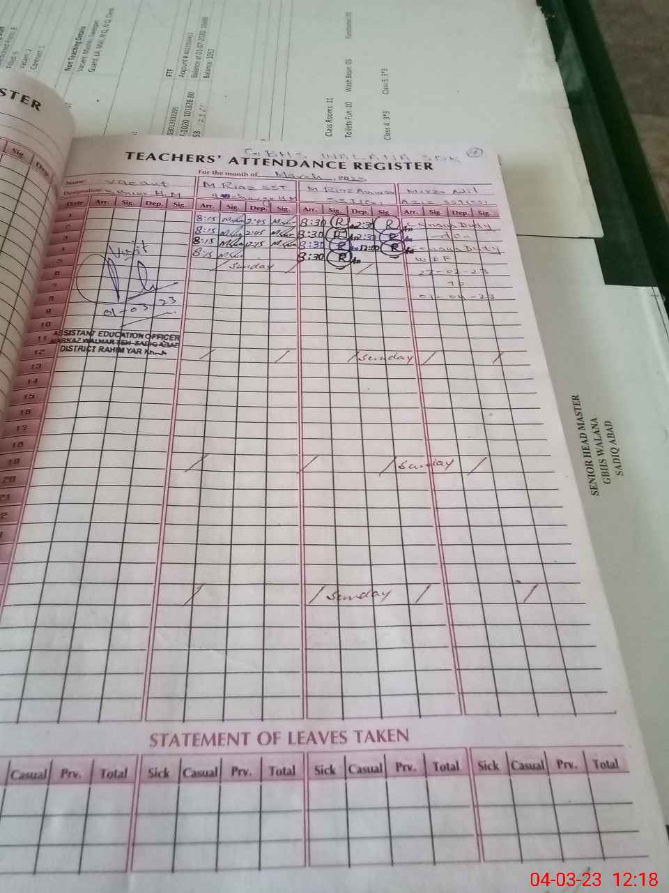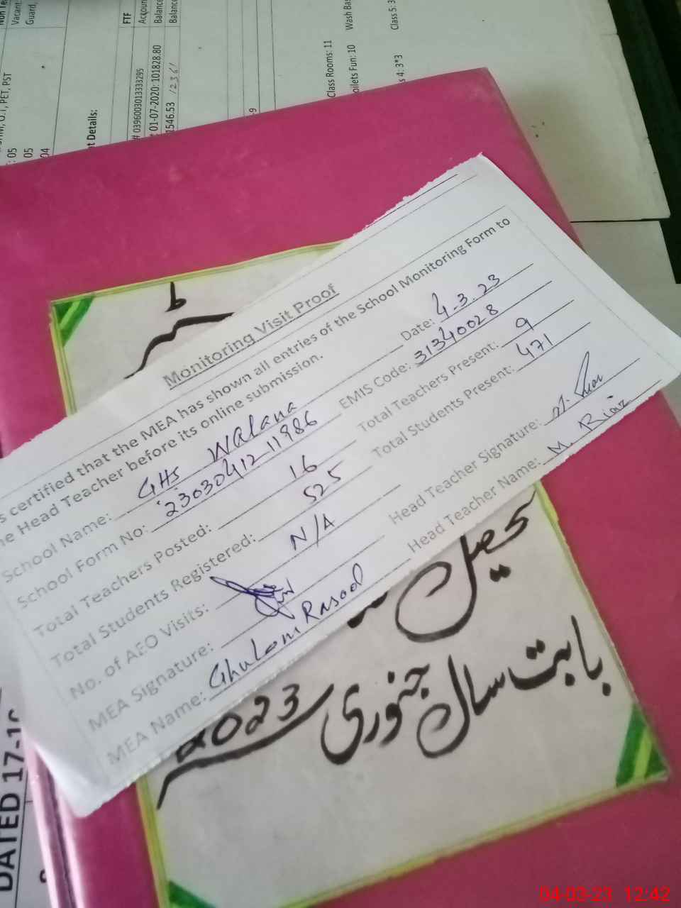 | Attendance Register | Head Teacher | MEA with School | Visit Proof |