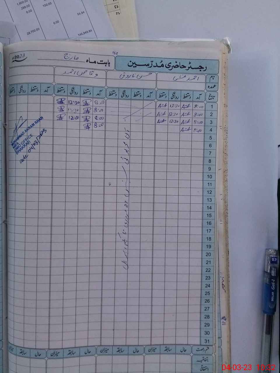 | Name: Ah**** Ba**** Designation: (School Headmaster's/Headmistress's) PST Phone/Cell Number: 03**** |