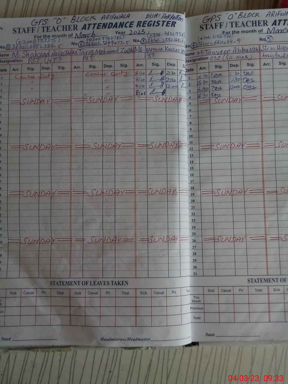 | EMIS Code: 39220170 | Name of School: GPS O BLOCK ARIFWALA | |||